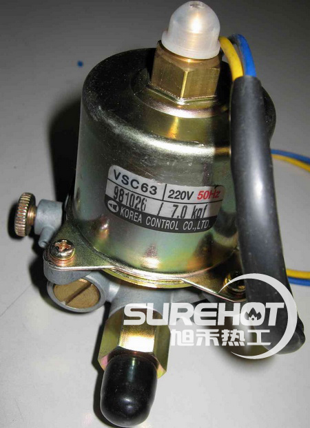 此油泵为电源直接驱动,体积小,无须外接马达。常用于6万大卡以下的小型燃烧器。出油压力8KG,流量8KG